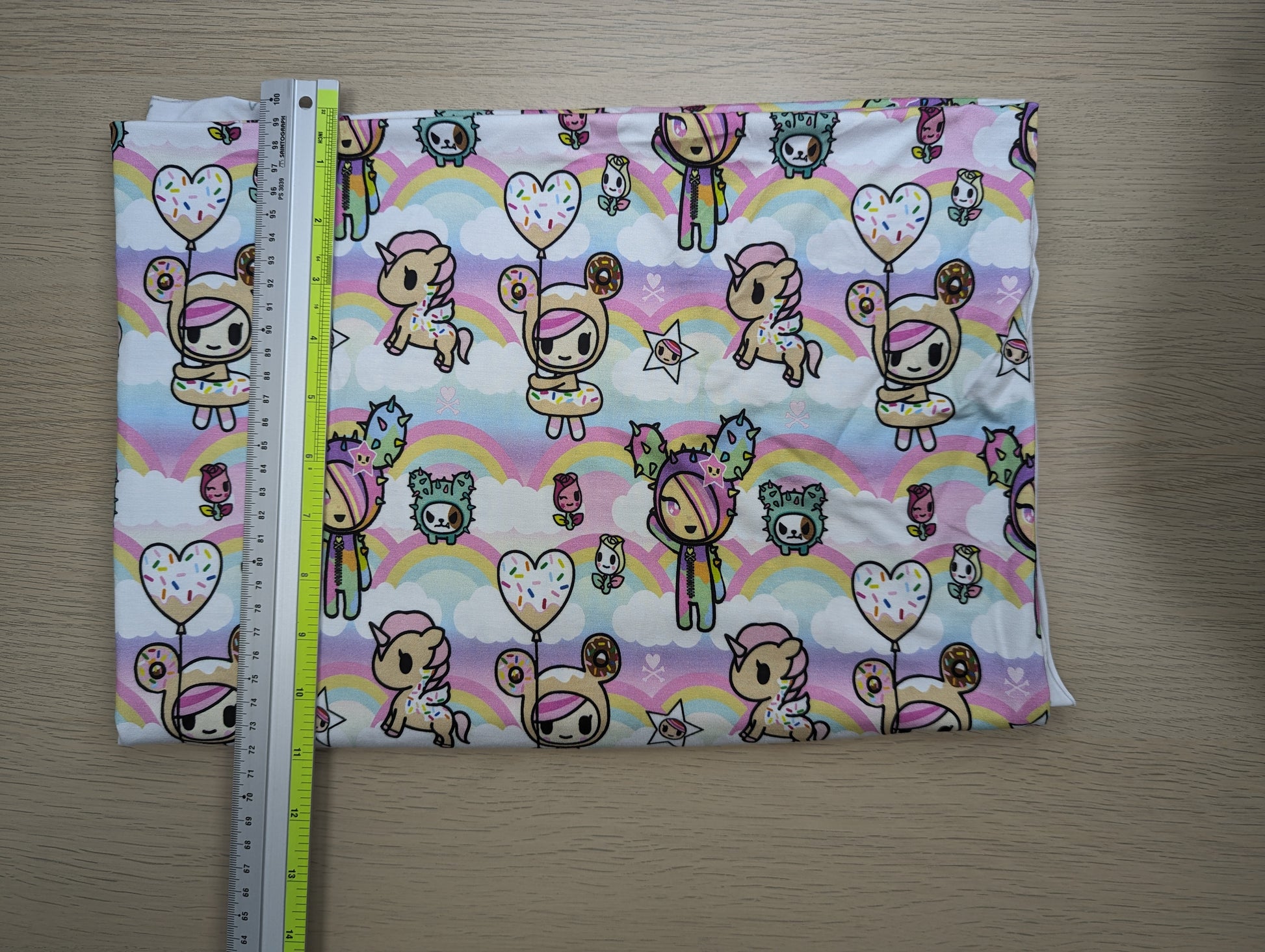 Bamboo Lycra - Donut and Cactus Friends on Rainbow - 1-yard Precut