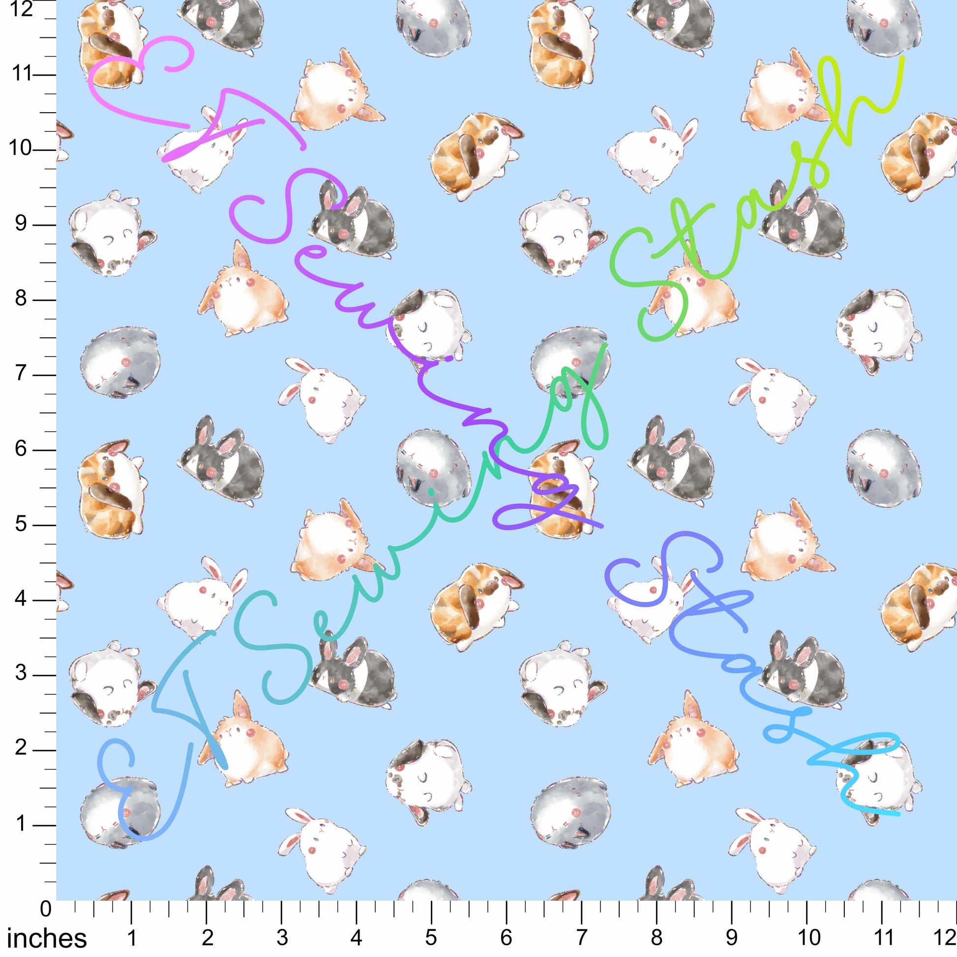 Athletic Knit - [ET Sewing Stash X n2y88] Bunnies (Blue) - By the yard