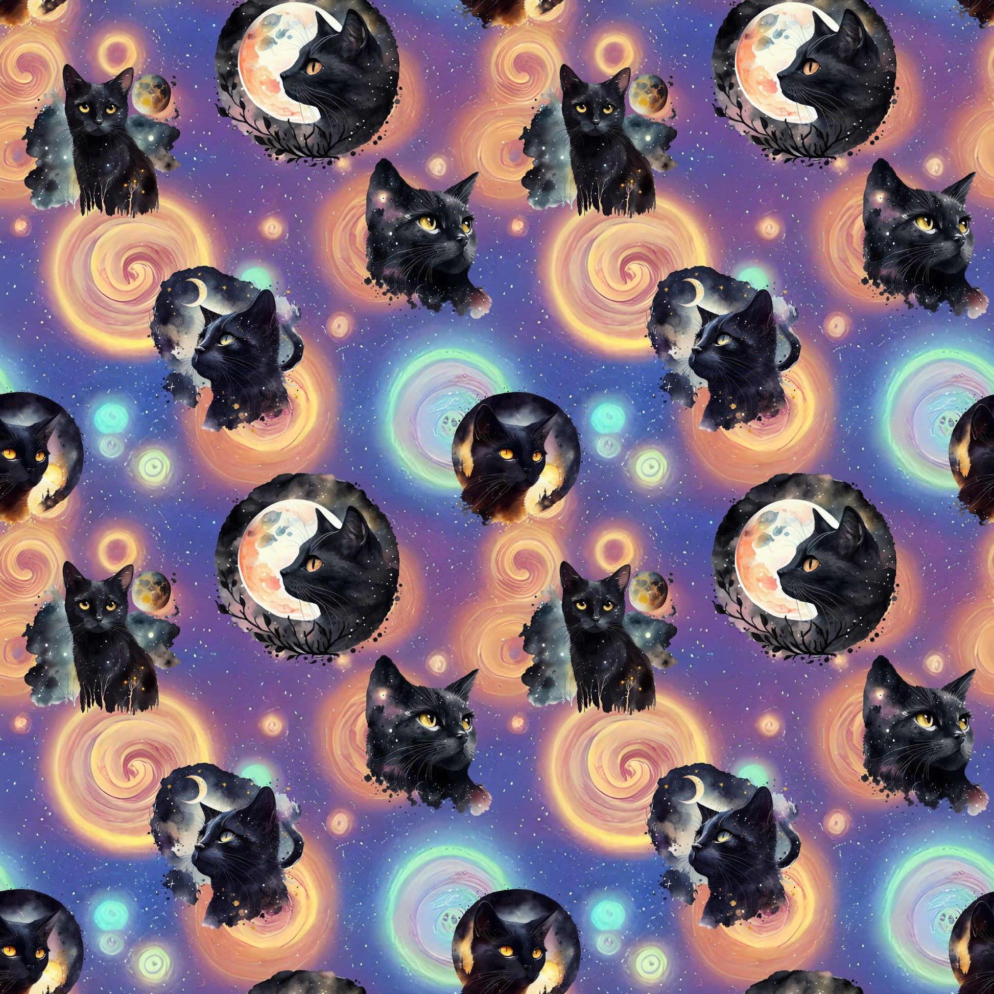Cotton Lycra - Galaxy Cats (Bright Pop) - 69-inch Precut