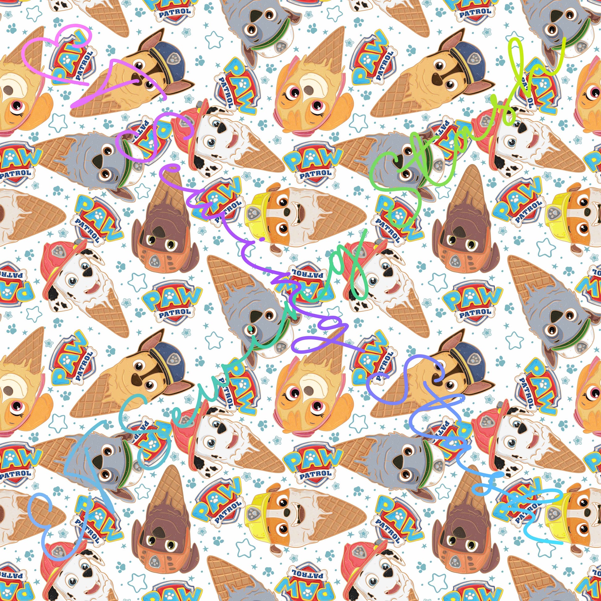 0.5mm Clear PVC - Patrolling Pups Ice Cream