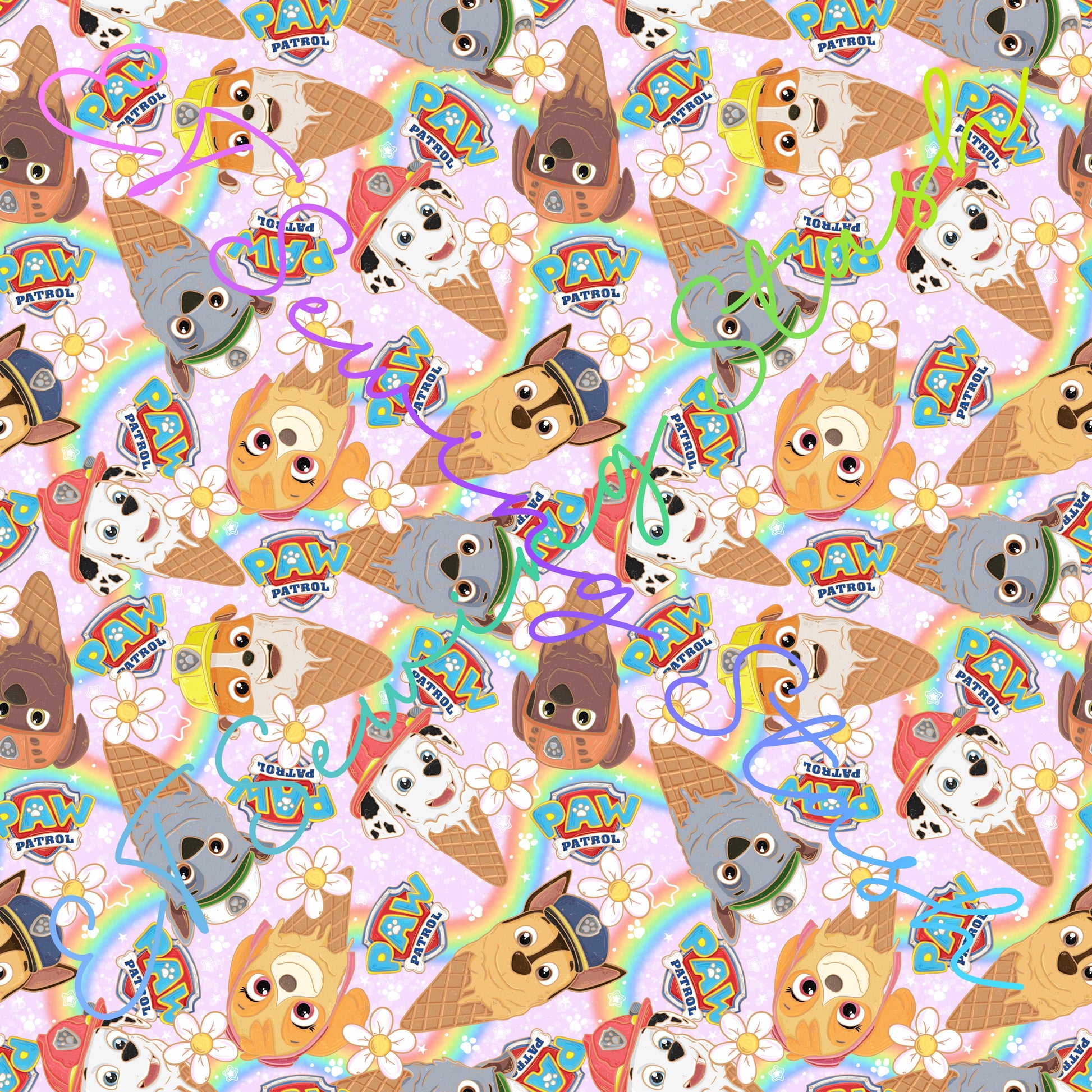 Printed Jelly Vinyl - Patrolling Pups Ice Cream (Rainbow)
