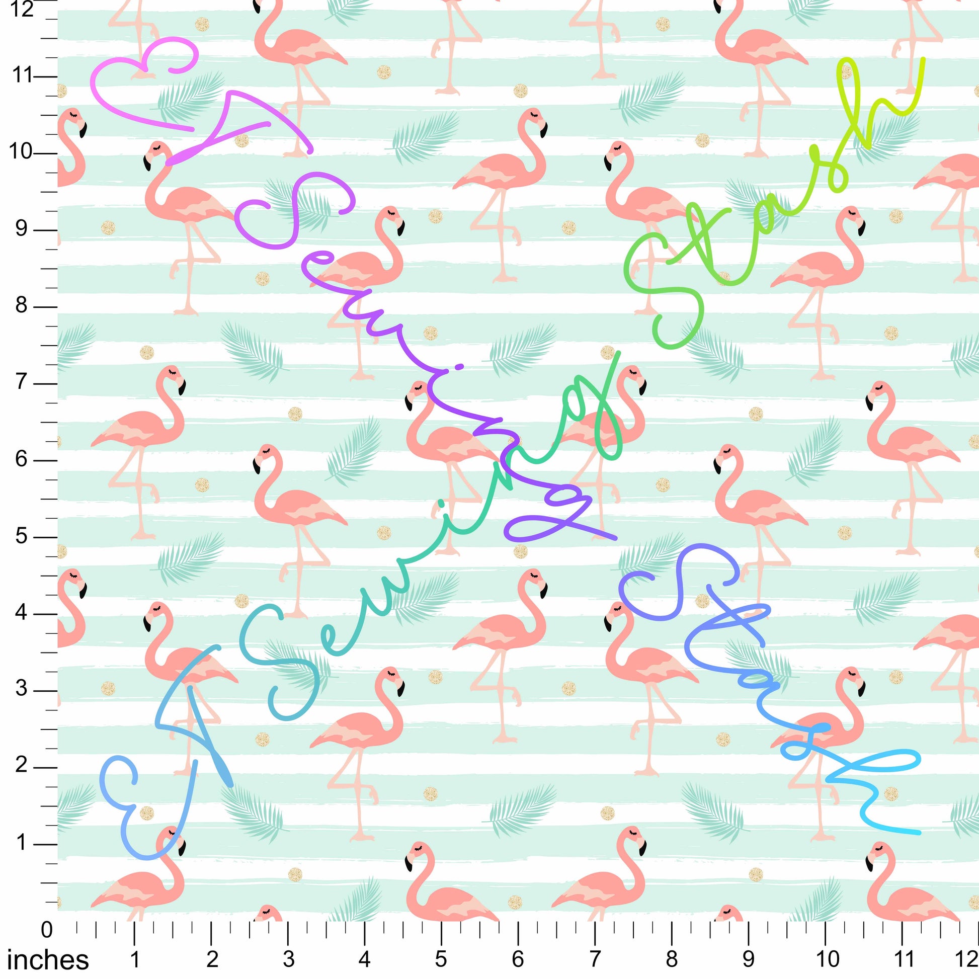 Pebbled Vinyl - Flamingoes in Pale Mint Stripes