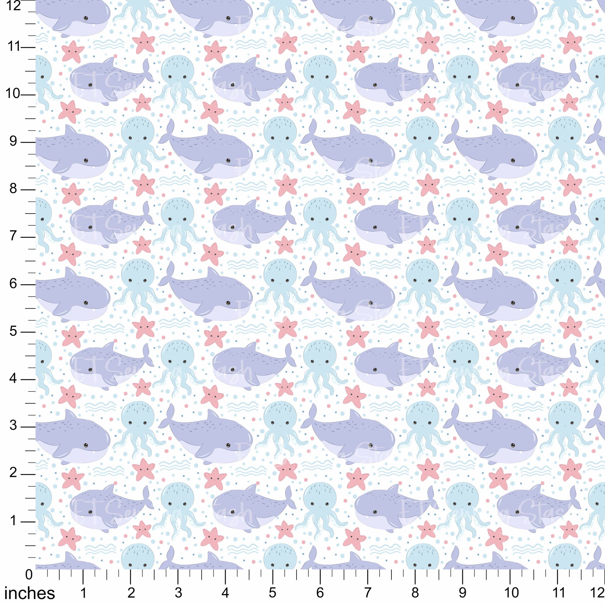 Cotton Twill - Pastel Blue Under The Sea 4 - By the Yard (Copy)