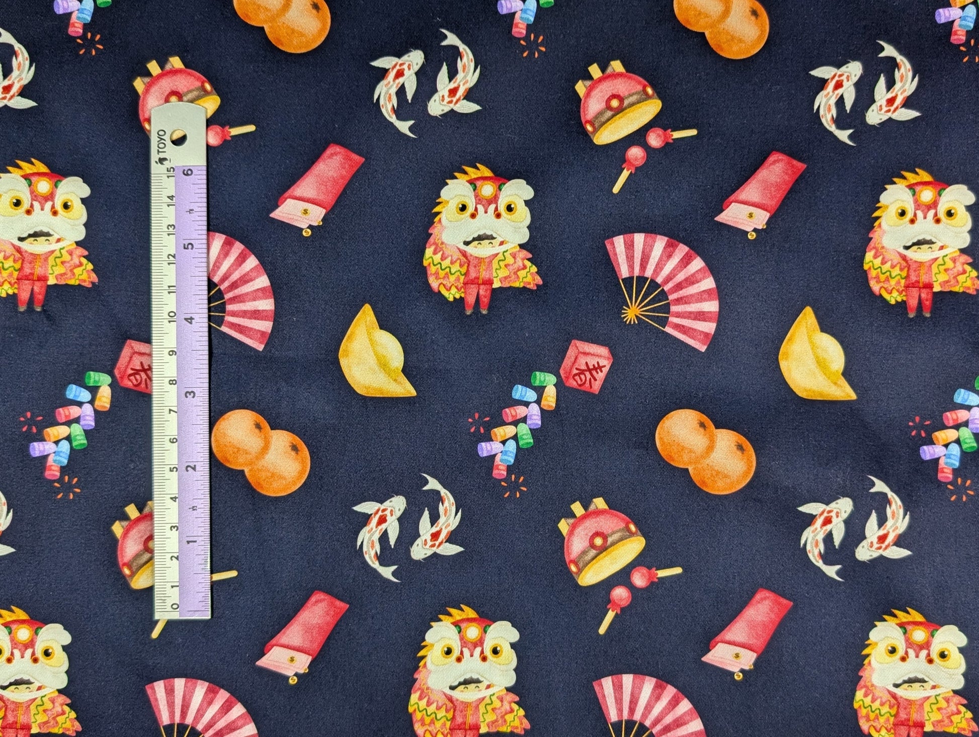 Cotton Twill - Chinese New Year - Symbol Toss (Dark Navy) - By the metre