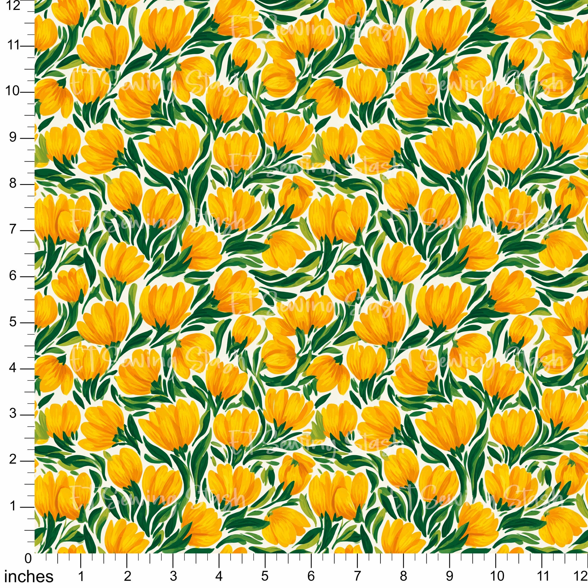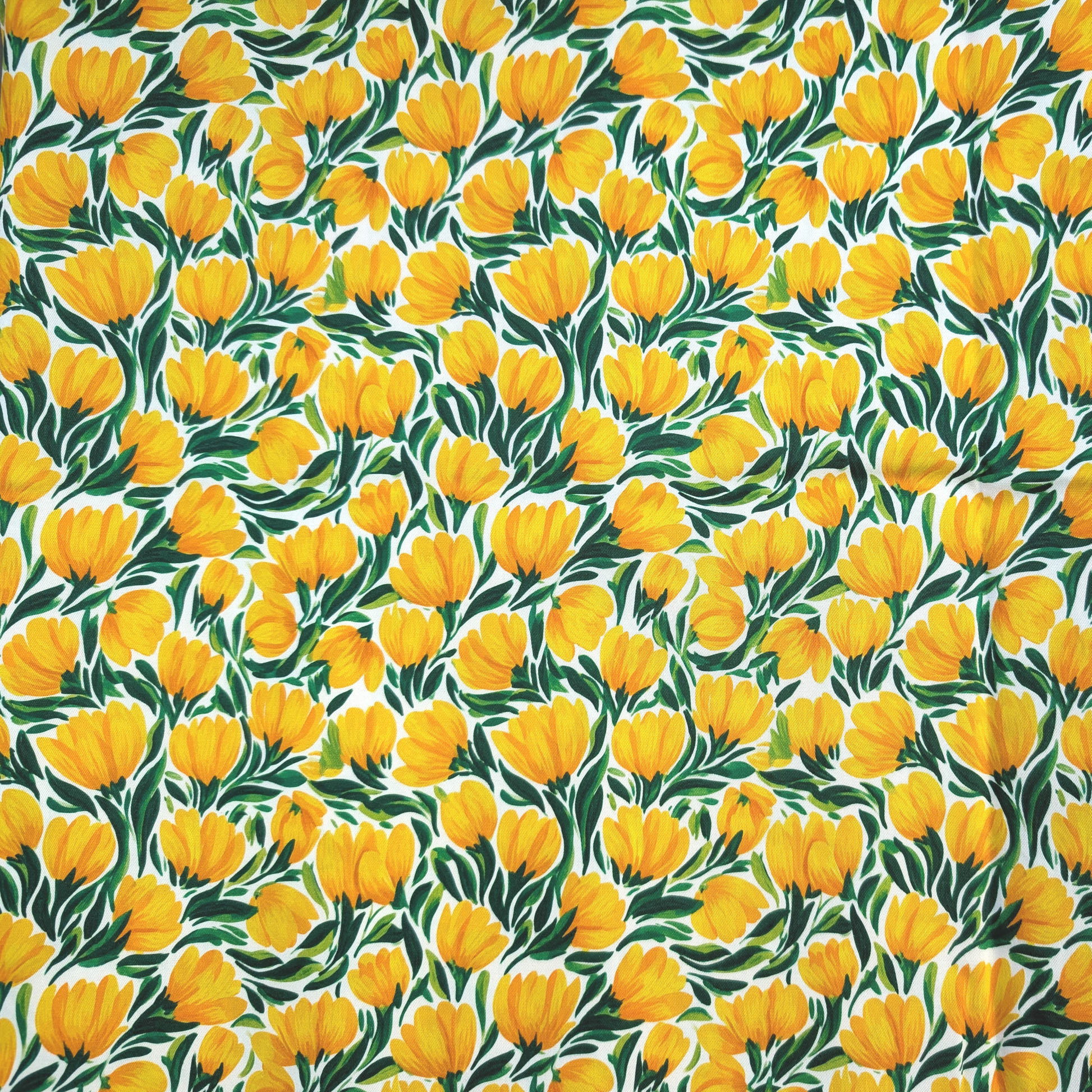 Cotton Twill - Painted Yellow Tulips - 1 metre Pre-cut